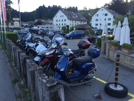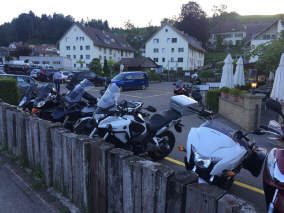 Diesmal war es nicht leicht, bekam ich vom Ziel-Restaurant die Auskunft, dass die Anzahl der Essenden auf 10 beschränkt wäre. Von Urs Frey bekam ich den Bericht, dass es aus der ersten Gruppe deren vier wären. Um 19 Uhr, anlässlich des Startes der zweiten Gruppe, waren es 6, da Renato gleich am Ziel wieder umkehren wollte. Ich telefonierte nochmals, um die 10 Personen zu bestätigen. Als wir gegen 20 vor 9 Uhr in Richtung der Alp Scheidegg unterwegs waren, kam uns die Gruppe von Arthur entgegen. Das Restaurant war bumsvoll, unmöglich noch 10 Personen unterzubringen. Und bei 14 Grad glustete es niemanden, auf der Terrasse draussen Platz zu nehmen, selbst für hartgesottene Biker war diese Aussicht nicht akzeptabel. Eine Hochzeitsgesellschaft war anwesend und offenbar trafen mehr Leute ein als erwartet. So besprachen wir, dass wir anstelle der Alp Scheidegg nach Gibswil zurückfahren würden, um dort einzukehren. |