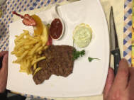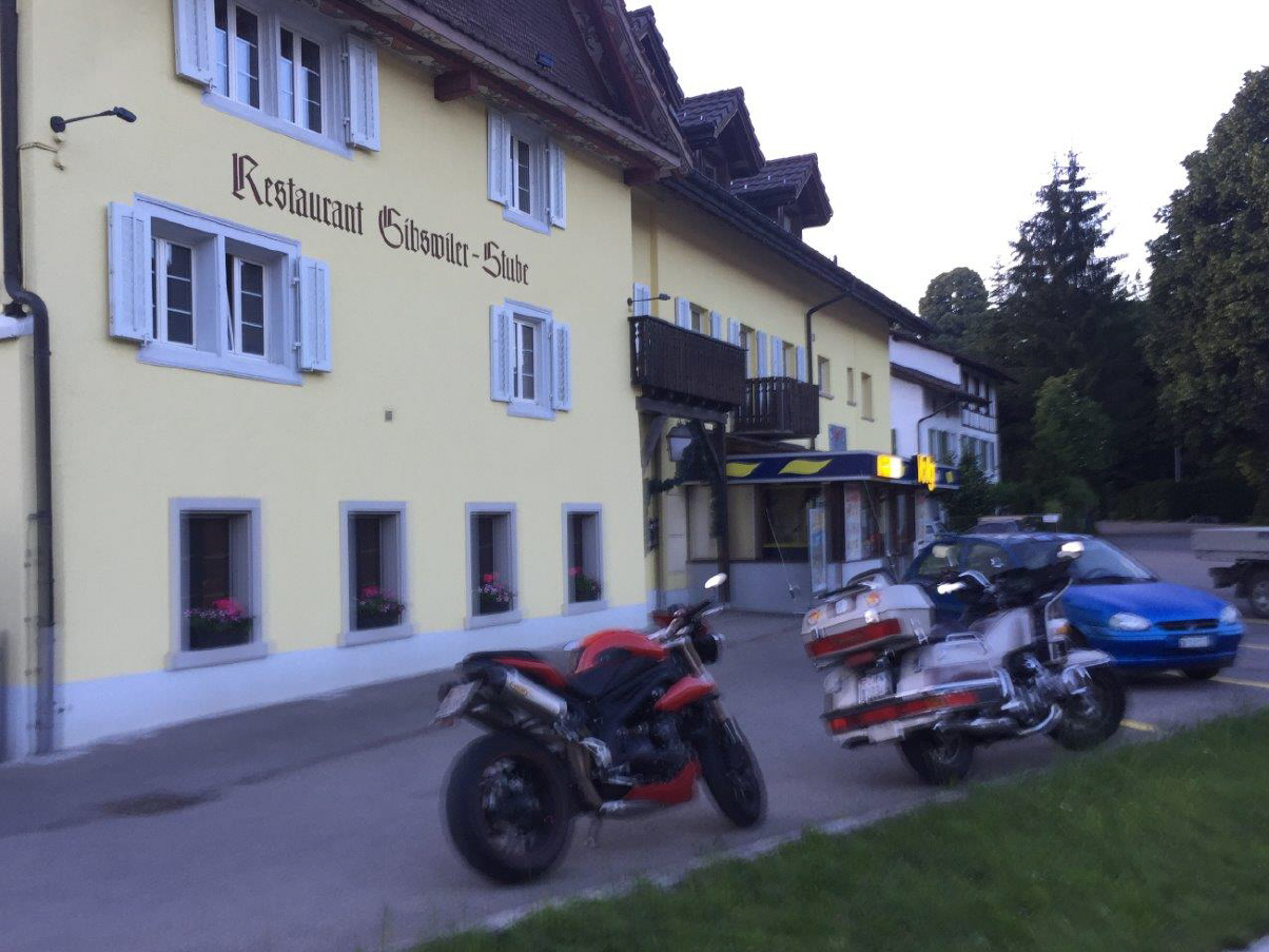 Während sich alle ins Restaurant begaben, machte sich Renato für die Heimfahrt bereit. Die Serviertochter fand für uns einen Tisch für 9 Personen, schon bald standen die Möhl-Flaschen auf dem Tisch und wir durften unsere Bestellungen aufgeben. Die «Gibswilerstube» erfüllt alle Ansprüche, hat eine leistungsfähige Küche - nachdem Suppe und Salat gegessen waren, standen schon bald die Hauptgänge auf dem Tisch: Wirklich toll zubereitet - «en Guete»!