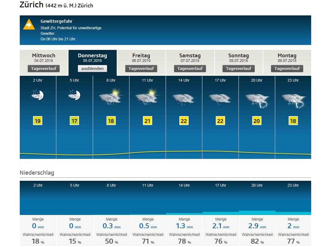 Züri-Wätter-Details für Donnerstag, 5.Juli 2018 |
