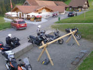 Alle anderen waren rechtzeitig eingetroffen. Bei Renato war auch mein Fahrschüler Tobias auf der Transalp mitgefahren, die beiden brachen gerade auf, um noch bei Tageshelle nach Hause zu fahren. Wir bestellten alle Cordon-bleu, so kam dann die Küche doch noch zu einem verdienten Feierabend, nicht allzu spät, aber eben extra für uns!