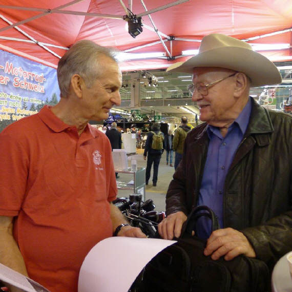 Am Donnerstag kommen die Gäste aus der ganzen Schweiz. Auf meinem Stand hatte ich in diesem Jahr, der Umgebung angepasst, eine Harley Fourty-Eight, die «Pink Lady» von meiner ex-Fahrschülerin Silvia, selbst pink Lady! Viele Besucher sprachen französisch und italienisch, bei ersterem konnte ich eher dienen. Daneben kamen, vor allem gegen den Abend, auch pontentielle Kund(inn)en aus der Region. Mit ihnen konnte ich einige Beratungsgespräche durchführen. Mein Team am ersten Tag bestand aus Milly, Claudia sowie Karin, am Abend kamen noch Natascha und Lee dazu.