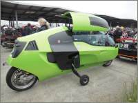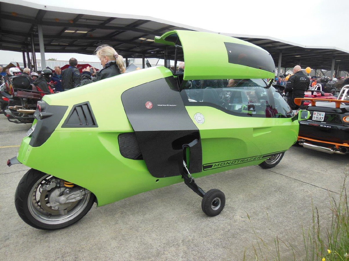 Noldi Wagner, ehemals Jumbo-Captain bei der SWISSAIR, hatte sein Leben dem «Ecomobil» verschrieben. Das einspurige Kabinenmotorrad basiert auf der BMW-K100-Technik. Inzwischen gibt es die modernere Version als «Monotracer» (Einspurer), welcher in der Tschechei gebaut und nun wieder in die Schweiz importiert wird. Hätte ich das dazu notwenige «Kleingeld», ich würde - glaub' ich - nie mehr mein Gesäss in ein Automobil setzen. Dieses Fahrzeug lässt Schräglagen zu von bis zu 52 Grad, geil!