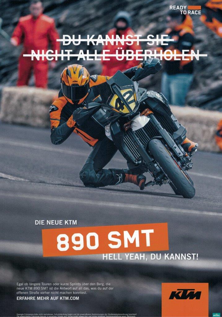 Immer wieder kann Werbung mit uns spielen, beeindrucken oder ganz einfach unterhalten. Ich denke oft: Wie um Himmelswillen kommt jemand auf eine solche Idee, ganz banale Dinge je nach «Beleuchtung» erstrahlen in einem ganz anderen, ganz witzigen Licht. Und dabei hat jeder Betrachter aufgrund seiner Lebenserfahrung seine ganz eigenen Verknüpfungen ... Hier geht es um eine ziemlich freche KTM-Werbung! PDF [3'857 KB]