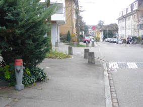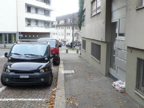 «Was ist ein Trottoir?» haben wir uns soeben gefragt: Wenn das Trottoir einfach ein erhöhter Teerstreifen ist, der in NICHTS ausläuft - ist das ein Trottoir? Und wer geht dann auf diesem Trottoir? Der Autofahrer, der sein Auto geparkt hat, oder die Bewohner des Hauses anschliessend an das endende Trottoir? |