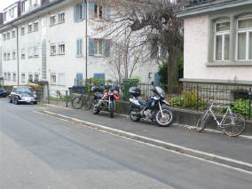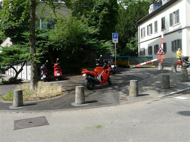 Parkplatz für 6 Motorräder - problemlos, nicht? |