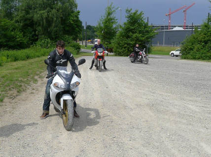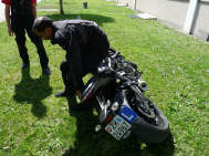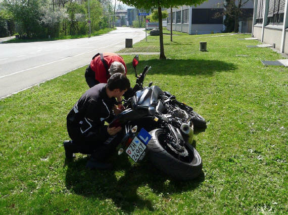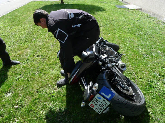 Das Thema «Motorrad aufstellen» findet in meinem Grundkurs statt: Wenn keine Maschine hinfällt, dann nehmen wir den Punkt jeweils am Ende des Kurses durch, z.B. hier: |