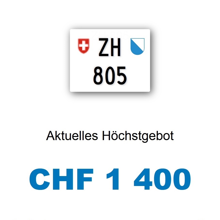 Am 05.11.2025 wurde im Kanton Zürich das nächste 3-stellige TÖFF-Nummernschild ausgegeben - in der Auktion ging es zum äusserst tiefen Preis von nur Fr. 1400.- weg! Verfolge den Verlauf vom «ZH 805