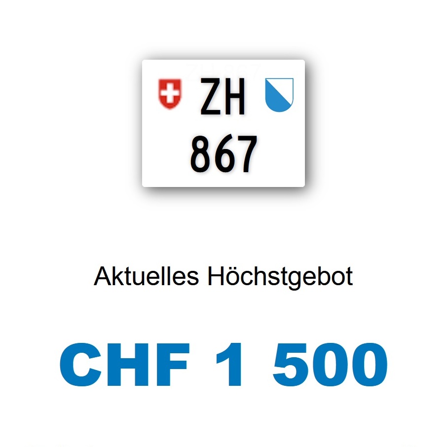 Am 4.9.2019 wurde im Kanton Zürich das zwölfte 3-stellige TÖFF-Nummernschild ausgegeben - in der Auktion dem Höchstbietenden: Verfolge den Verlauf «ZH 868