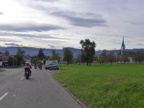 Unsere Fahrt führte uns dem Greifensee entlang, erste Kurven hoch nach Egg, später im Raum Hombrechtikon. Sonst ging es vorwiegend geradeaus, über den Seedamm und direkt nach Siebnen SZ an den Fuss der Sattelegg, einem voralpinen Pass, wo es den ersten Halt gab. Leider musste Mircea von hier zurückkehren zu seiner Familie. Die restlichen 6 Teilnehmer, mit mir 7, fuhren anschliessend über die Ibergeregg (ohne Halt) nach Rickenbach bei Schwyz, wo es eine Wiedervereinigung der in zwei Teile zerfallenen Gruppe gab. Dann war ein erster Halt um aufzutanken, mit Möglichkeit eines Toilettengangs, an der Shell-Tankstelle in Schwyz. |