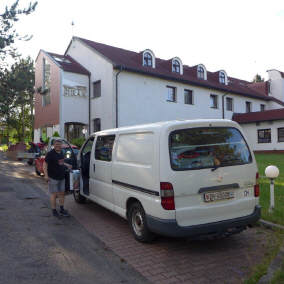 Diesmal reiste ich bereits am Vorabend nach Rorschach, um am anderen Morgen nicht noch einmal Claudio zu enttäuschen ... . Bevor wir nach Tschechien starteten, mussten wir noch das Auto fertig laden. Schliesslich, nach einem feinen Morgenessen im Bistro nebenan, starteten wir kurz vor dem Mittag zur gut 7-stündigen Autofahrt. Gegen 19 Uhr trafen wir im Hotel «Sirac» ein, wir bezogen unsere Zimmer und nahmen erst das Nachtessen ein. |