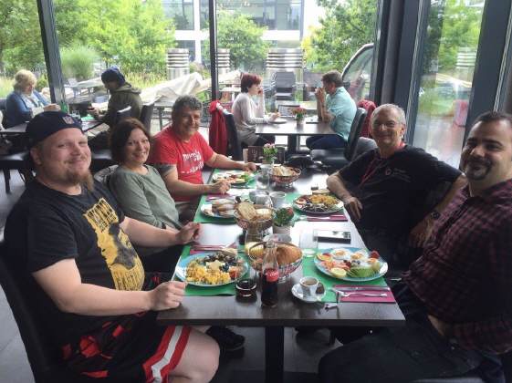 Die Fahrt nach Most dauert 7 Stunden ohne Pause. Deshalb luden wir meinen HiAce-Bus schon am Samstag. Diesmal wurde meine Rennmaschine von Claudio mitgenommen, der sich ein Riesengefährt, einen Mercedes Sprinter, gemietet hatte. Dies erlaubte die Anreise ohne Anhänger, was sich für die Fahrzeit positiv auswirkte. Claudio ist bestens ausgerüstet, so beschränkte sich unser Aufwand auf das Nötigste. Ich war der Einzige, welcher Reifenwärmer und damit auch Montageständer verwendete. So hielt sich unser Gepäck in Grenzen. Am Sonntag trafen wir uns um halb 8 Uhr an der Tramstrasse zur Abfahrt. Wir trafen uns bei Claudio in Rorschach, wo wir im Restaurant gemeinsam das Frühstück einnahmen. |