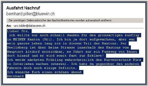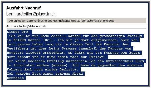 E-Mail vom 20.Okt. 2013 abends nach der Fahrt |