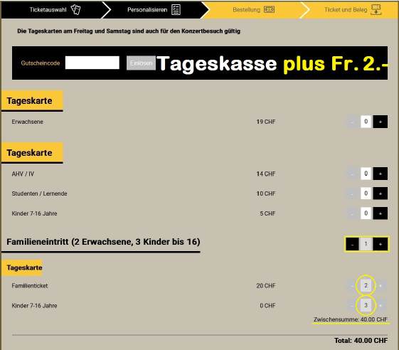 Eintrittspreise: An der Tageskasse PLUS Fr. 2.- |